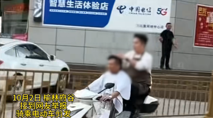 男子边骑电动车边理发! 陕西交警: 罚款500元、记9分!